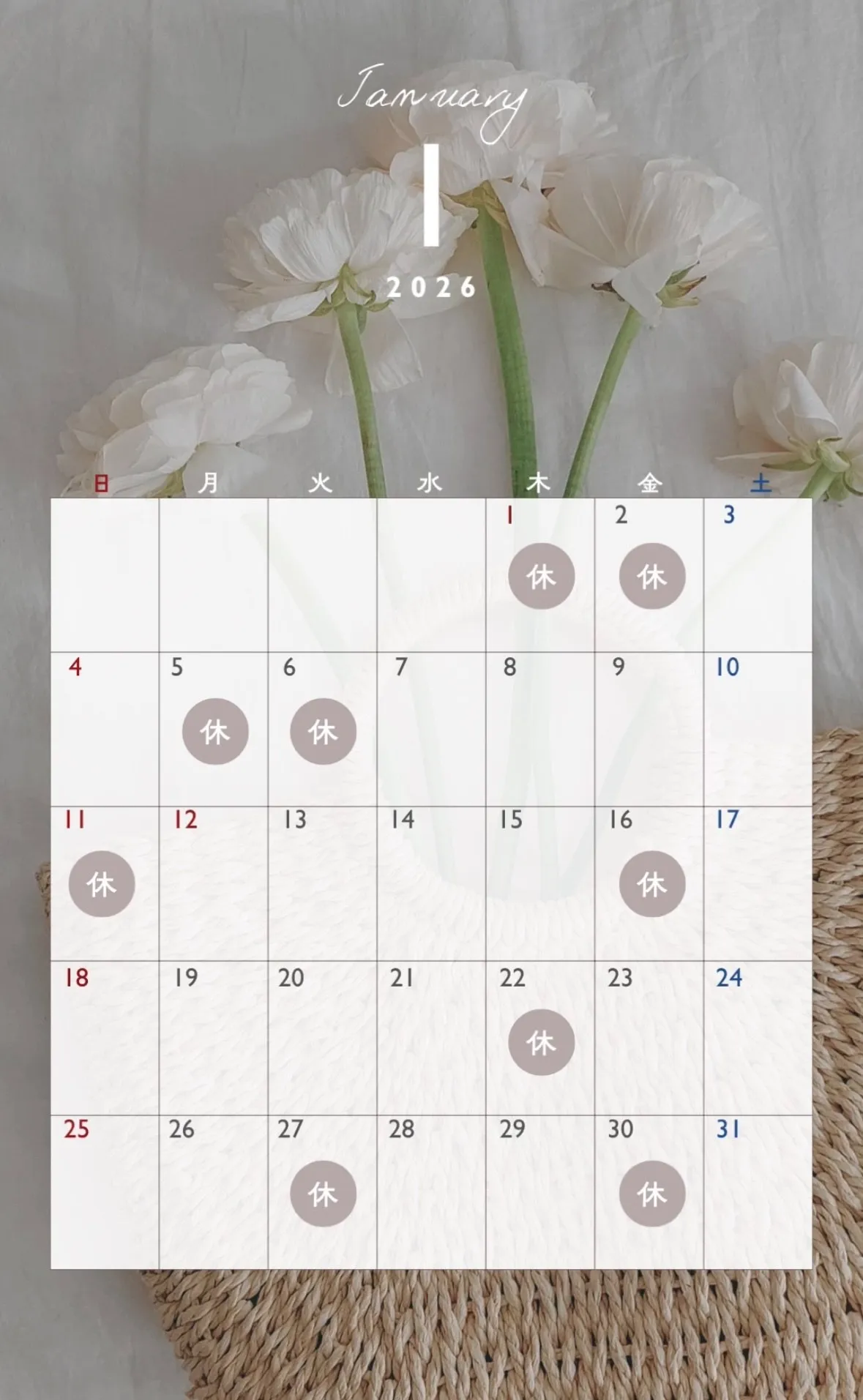 今月のお休みのお知らせをいたします。
